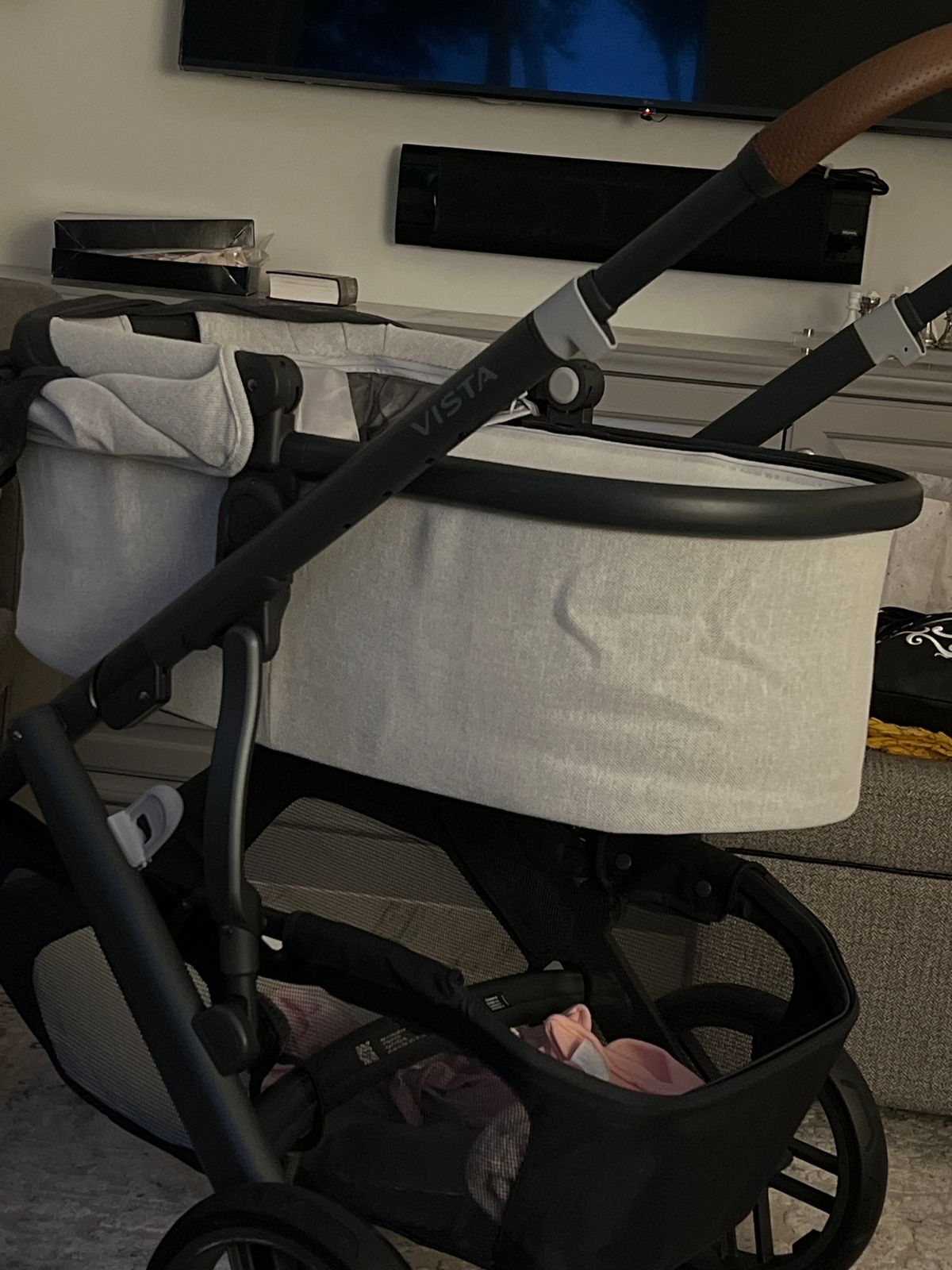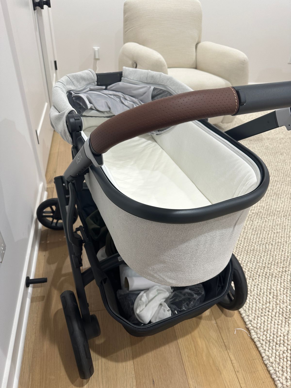 Love this stroller. Got rosewood color and it’s gorgeous. Rolls so smoothly and very roomy under storage.