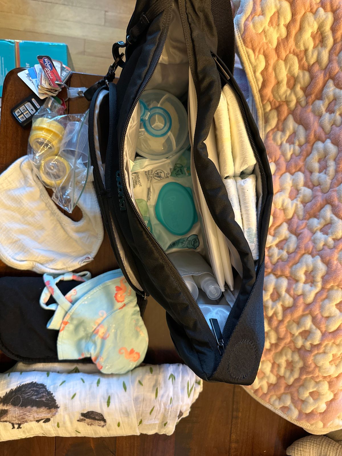 Perfect size! Fits exactly what i need to take along on outings. Love that it has a changing pad in the bag.