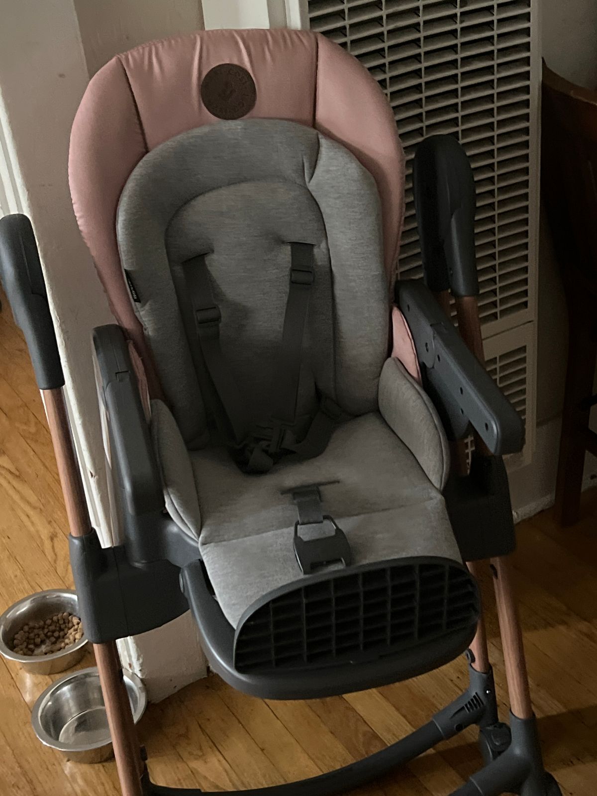 This high chair is amazing. comfortable cushioning for baby, reclines back nicely so younger babies can enjoy, and transitions into a booster seat so toddler can use as well. Love it!
