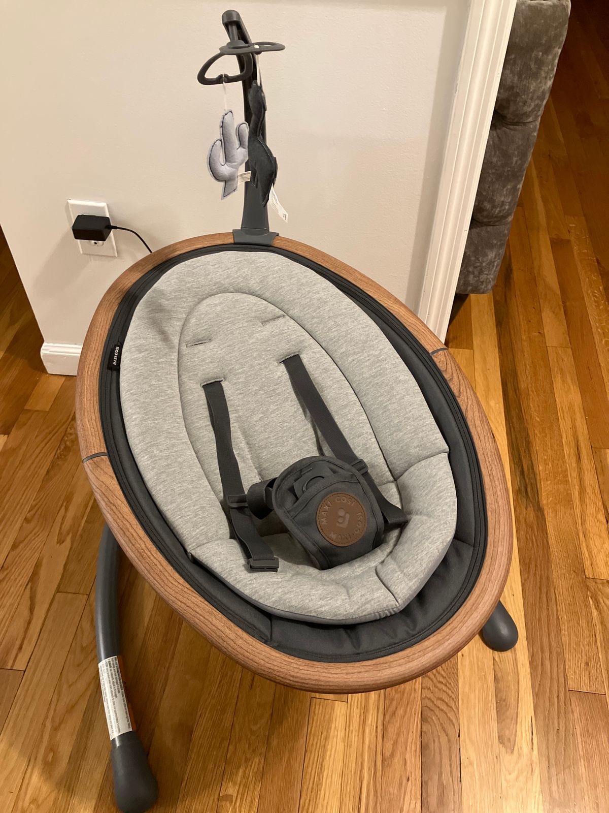 Looks nicer than other swings. Works great. Baby liked it at first but gets fussy now, he’s only 3 weeks old. Sure he’ll like it better when he’s a month older.