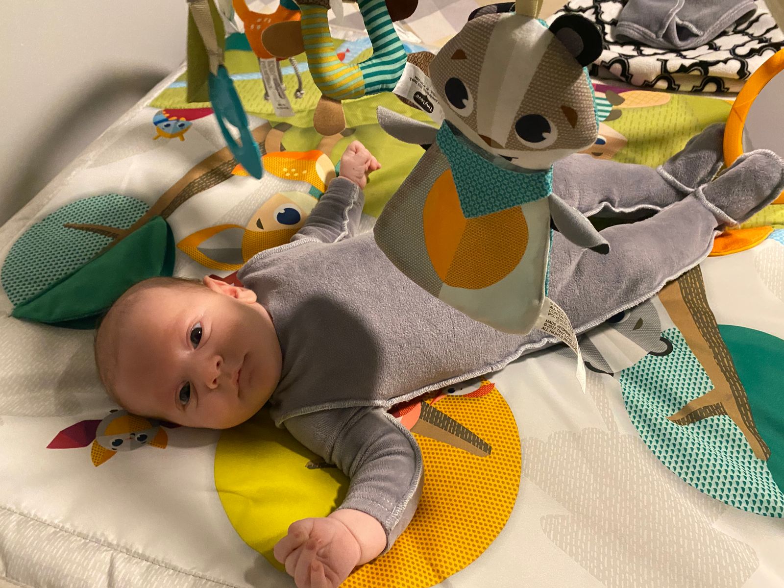 My grandson is so happy with this item!! Smiles, talks to it, bops everything he can reach, and gets so excited his legs are kicking a mile a minute!!!!!!
