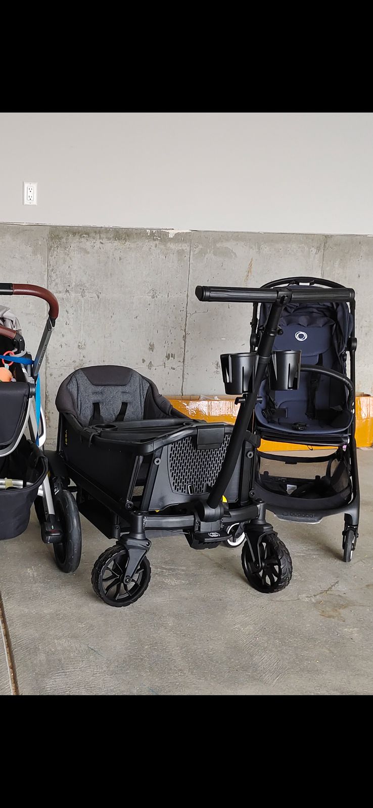 A completely new concept, the Veer All-Terrain Cruiser is the first-ever crossover. It defies conventional labels by combining the functionality and safety of a premium stroller with the classic fun and practicality of a wagon. It is built to last for ages 0-5+ yrs and beyond. Cruiser can be pushed or pulled, or pulled alongside. It has two built in seats with 3-point harnesses for toddler comfort and safety, and a collapsible foot-well for ergonomic seating. It is maneuverable, adaptive, rugged, safe and mobile.