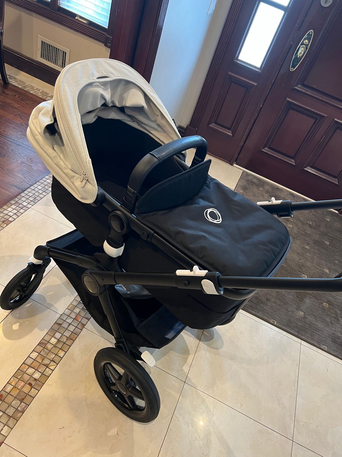 Aerated 3D comfort mattress Made from innovative 3D mesh Quick-click harness & shoulder pads Easy buckle, unbuckle and height adjustment Extra large sun canopy offers protection from elements Breezy bassinet features sun canopy, peek-a-boo window, & new breezy panel in bassinet Strong & sturdy, yet lightweight at only 21.8 lbs - a full pound less than the Fox2! Suitable from birth to toddler up to 50 pounds