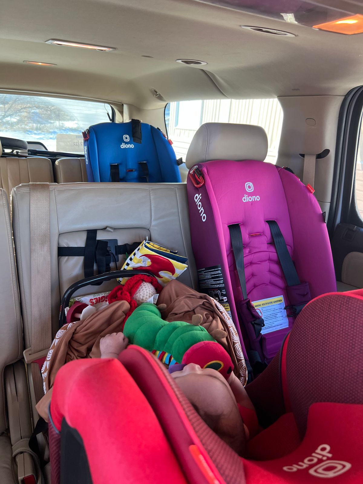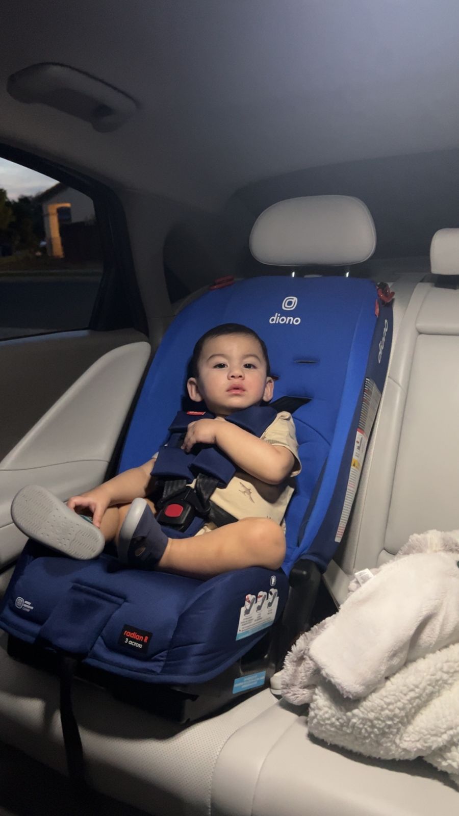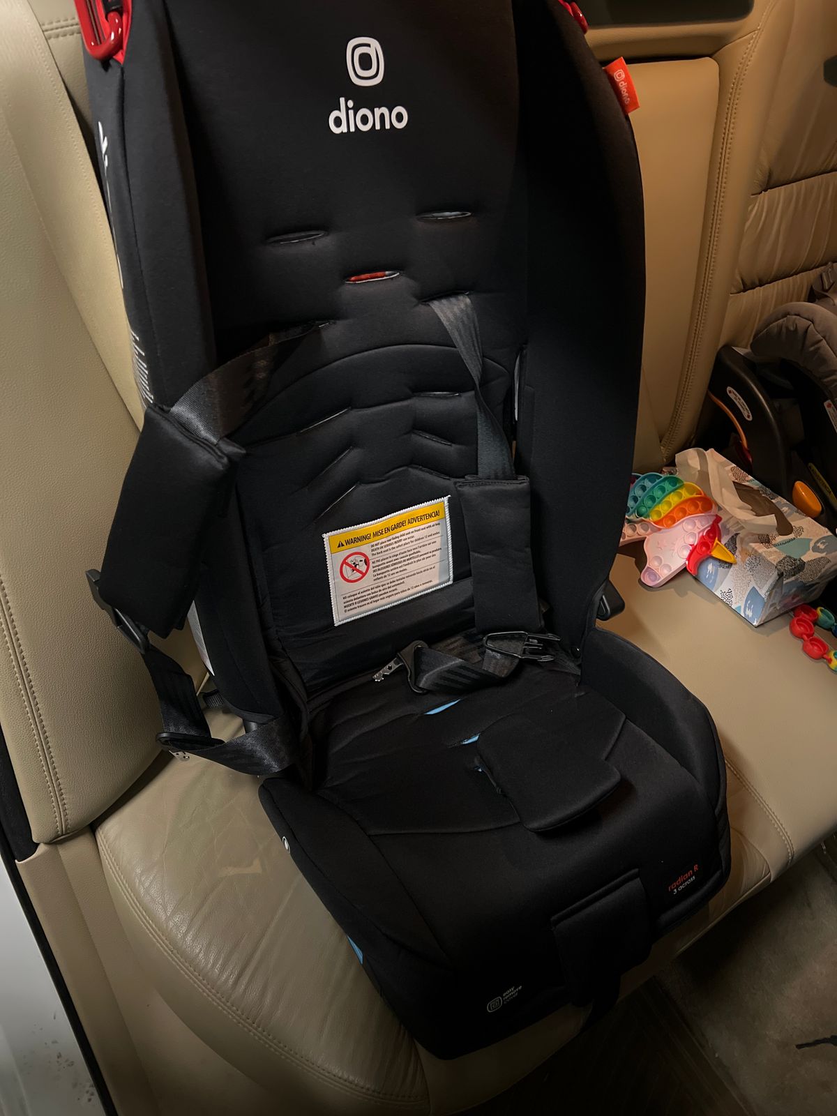 It's a great car seat, with a high back. Pretty streamlined design - not too cushiony and not too many spots to collect crumbs and dirt. One downside to the height, though, is how much space it takes up when it's rear facing.