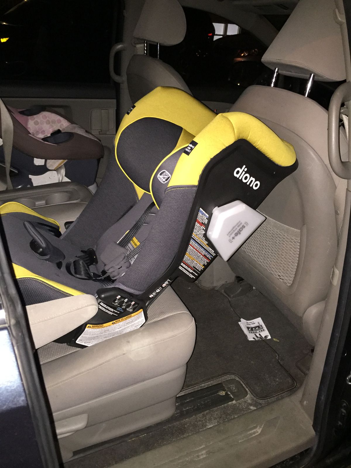 Downside when it is in the rear facing position: the seat in front can’t recline and my other kids are not able to squeeze past the chair to get into the car from this side door