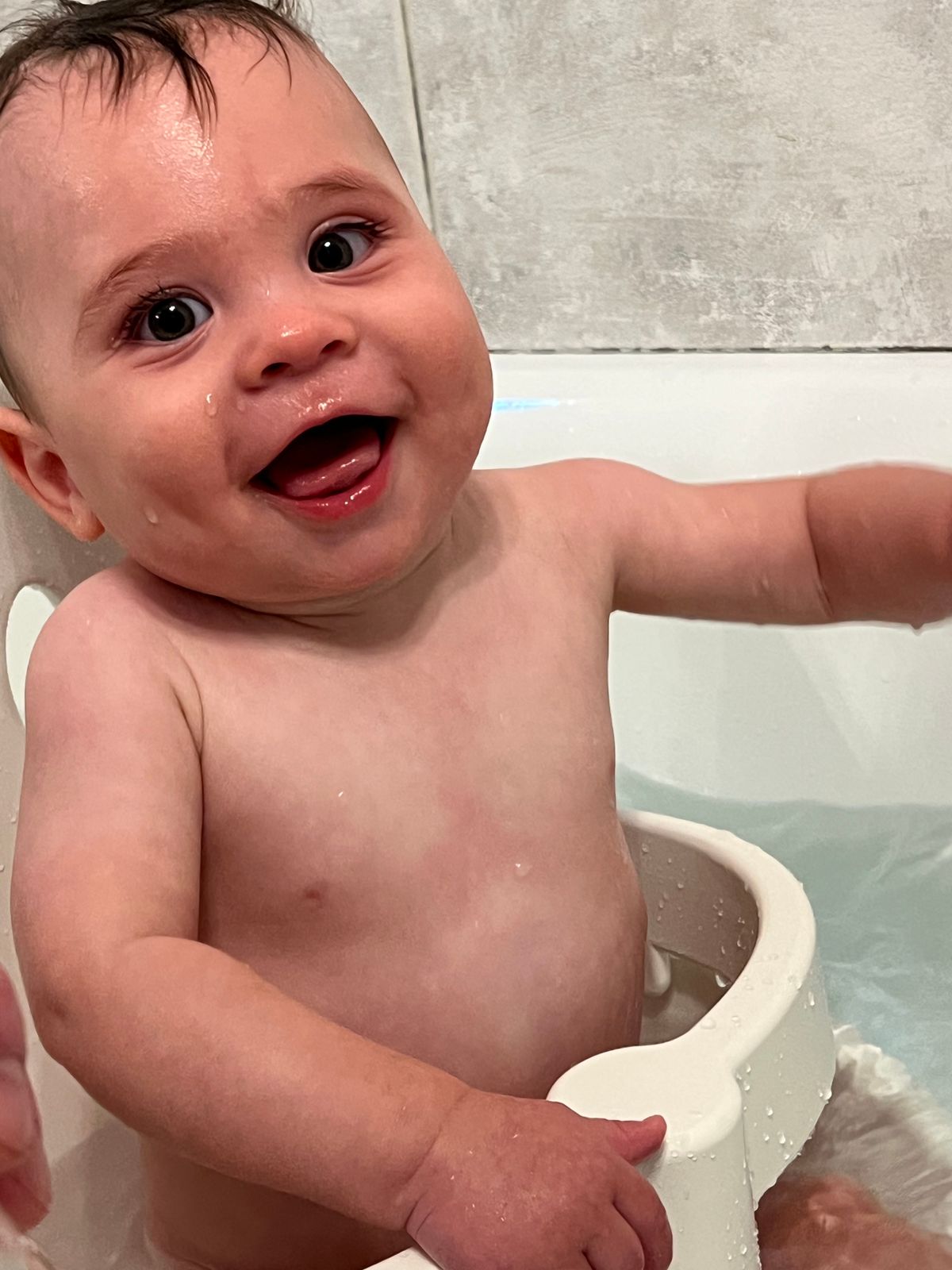 Great for my 6 month old who was frustrated that she couldn’t sit up in her 4moms tub! Allows us to fill the tub and use bath toys without having to hold her. Stays clean & dries quick. Only con is the suction cups don’t stick to our textured tub so when we lift her out of it, the chair tends to come up with her. Not a flaw of the seat, just something to think about if you have a textured tub!