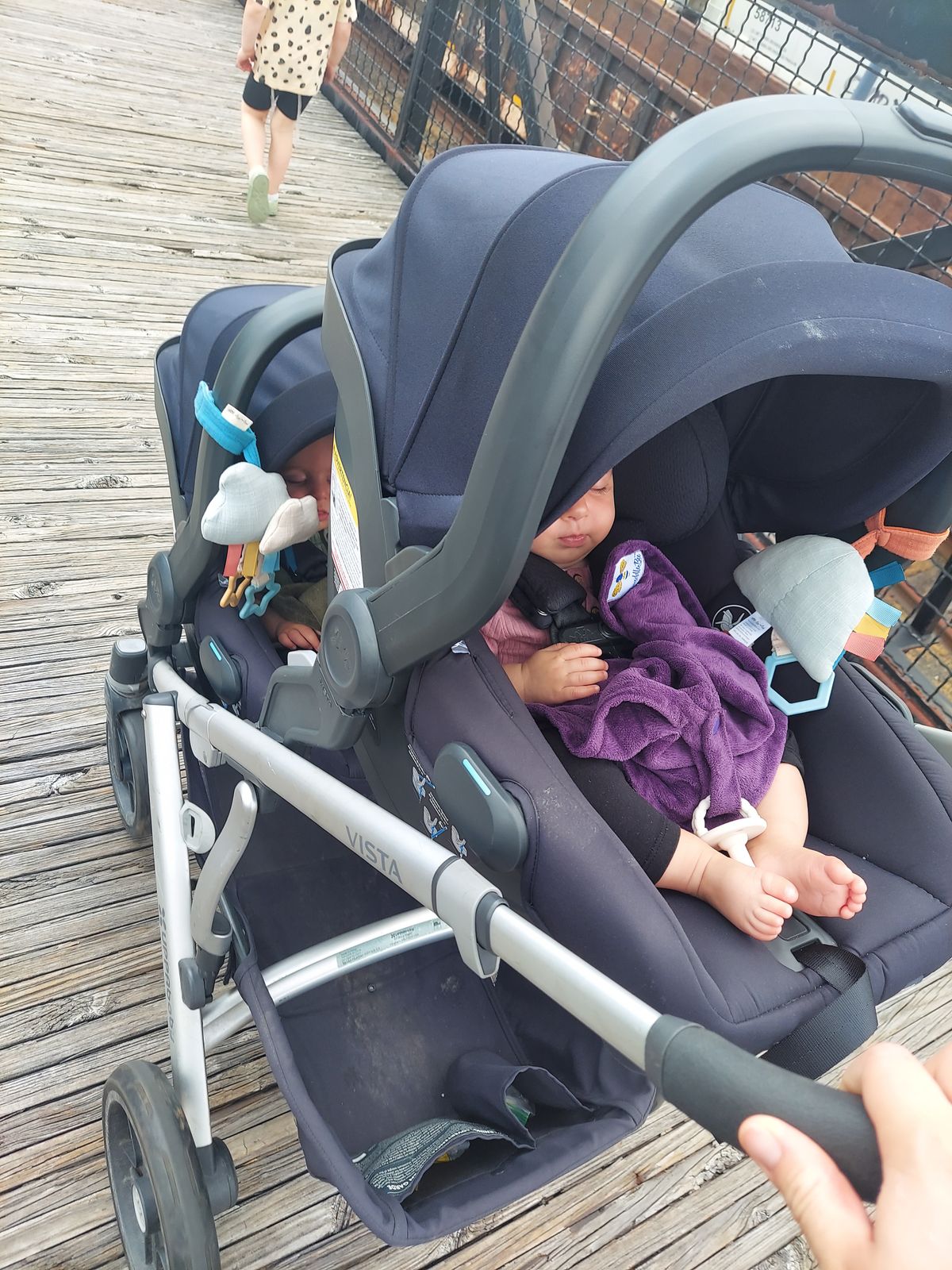 With twins your looking for convenience and ease this carseat provides both of those. With the trademark uppababy quality which is amazing it clicks in and out of the frame to the base easily. Never-mind that the base is super easy to install. The carseats look amazing on the frame. The best is that they are super comfortable, even in the summer heat my babies have NOT once sweated in them or looked super hot.