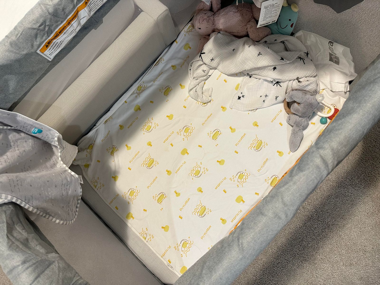 Zip on mesh bassinet provides a ventilated, elevated bedside solution