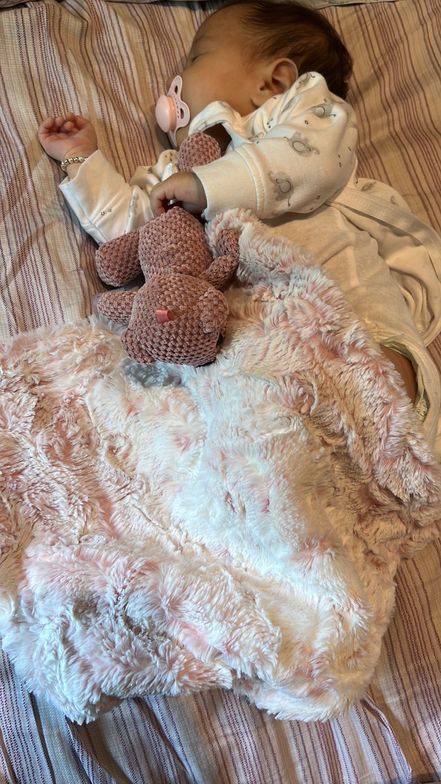 This security blanket is so cozy! I gifted it to a friend, and she loved it! The color is also so cute.