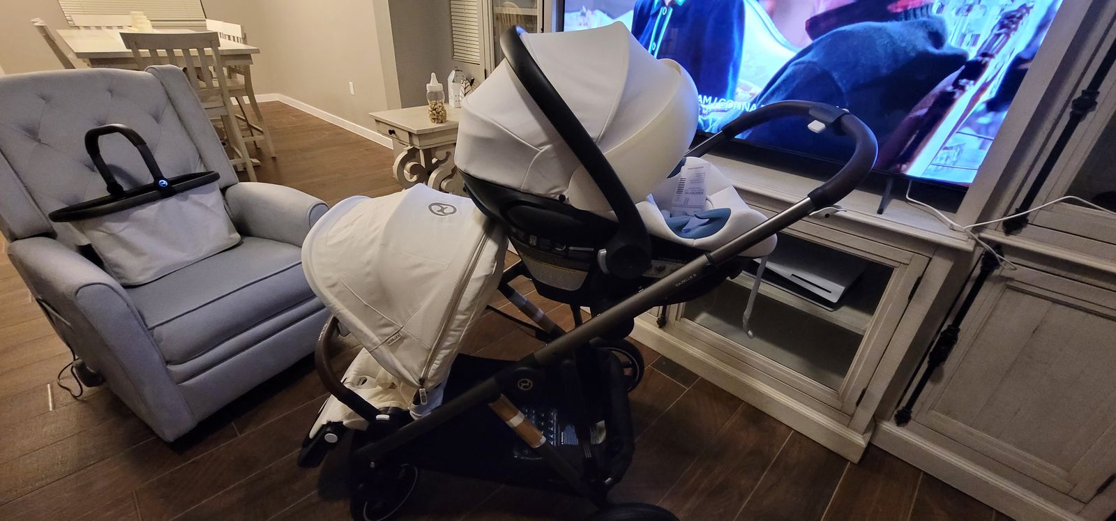 Versatile 3-in-1 Travel System with the seat unit, Gazelle S Cot (sold separately), and any CYBEX infant car seat (sold separately) using the included adapters