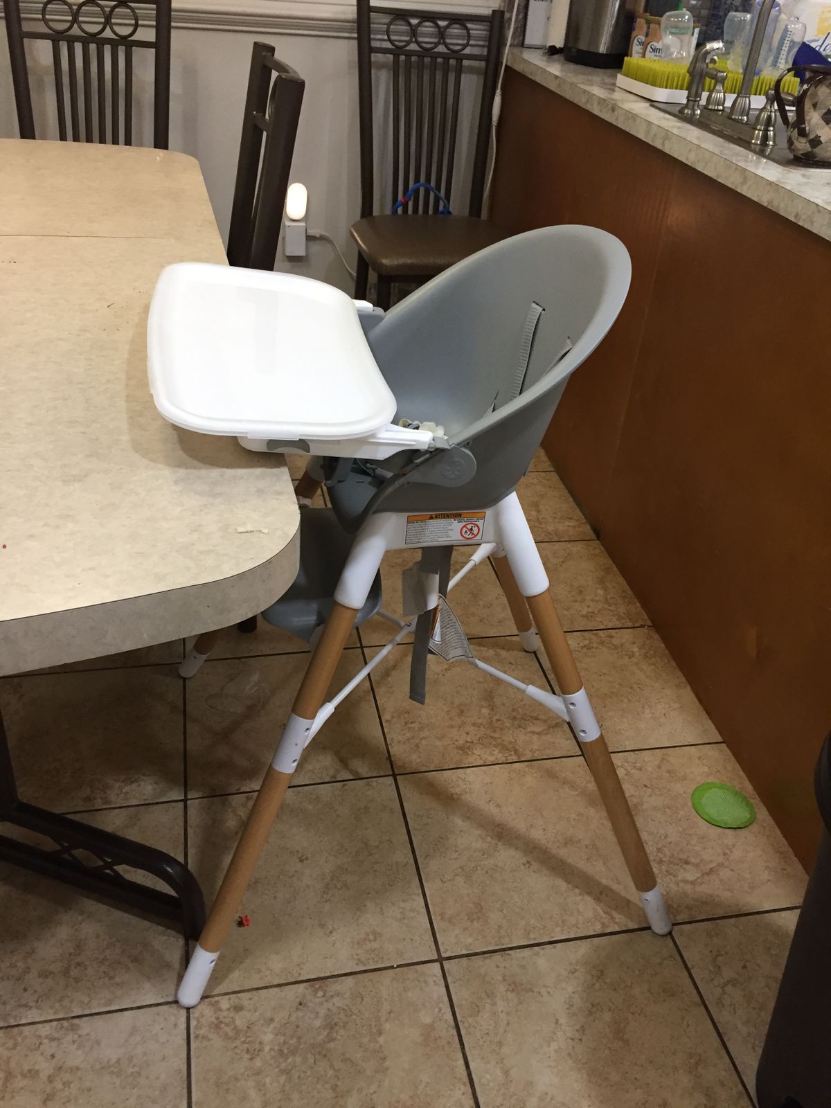 One star off since it can’t move around once the baby is sitting in it-it does not slide well on the floor. So wherever you start your meal is where you are stuck.