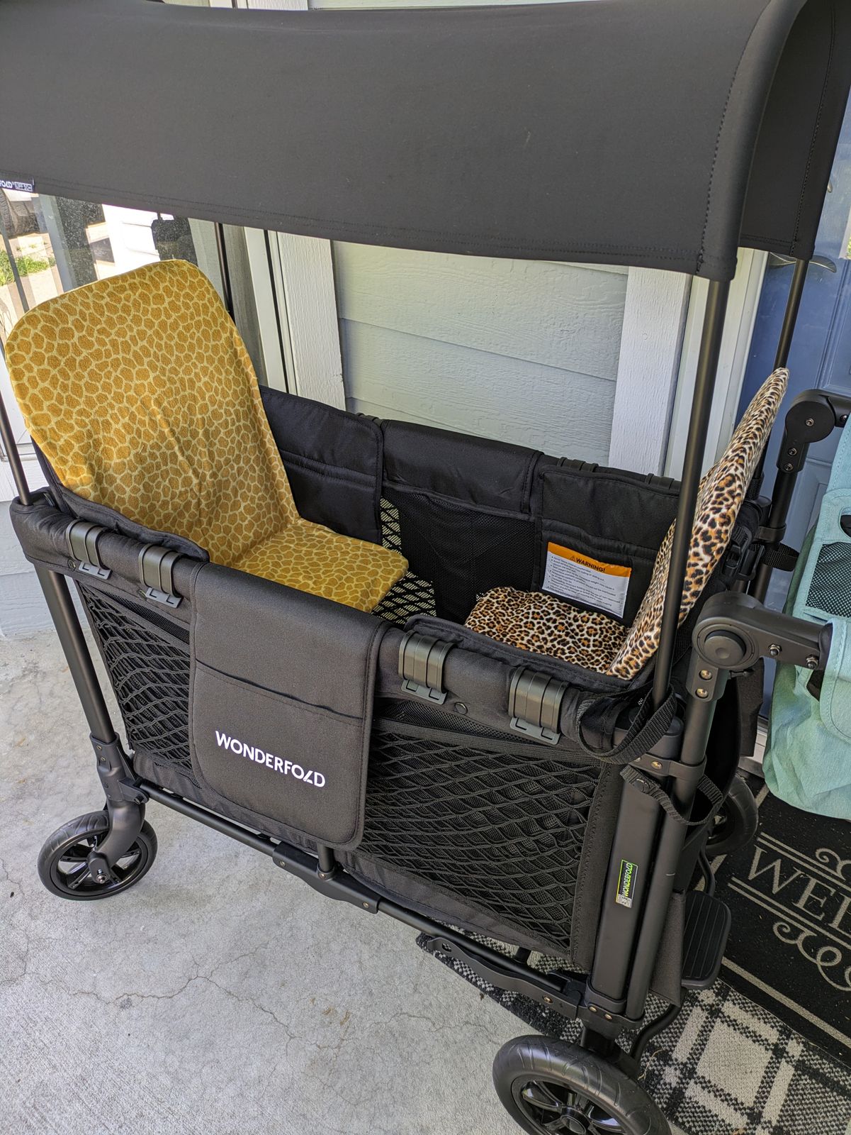 We previously owned the 4 seater luxe version of this wagon and "downgraded" to this base model 2 seater and I couldn't be happier. Same great quality of wagon at a third of the price and the bells and whistles aren't missed from the luxe. Love that the handlebar is still adjustable on the 2 seater OG. My almost 5 and 7 year old tall children still fit.